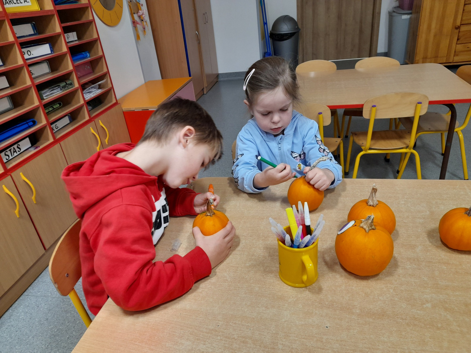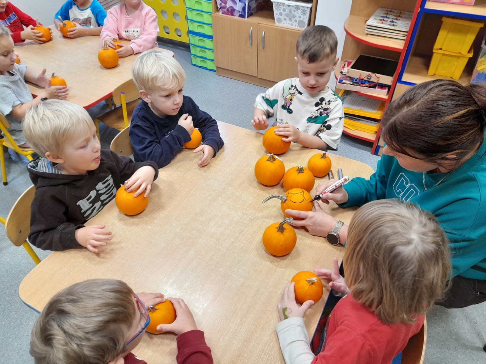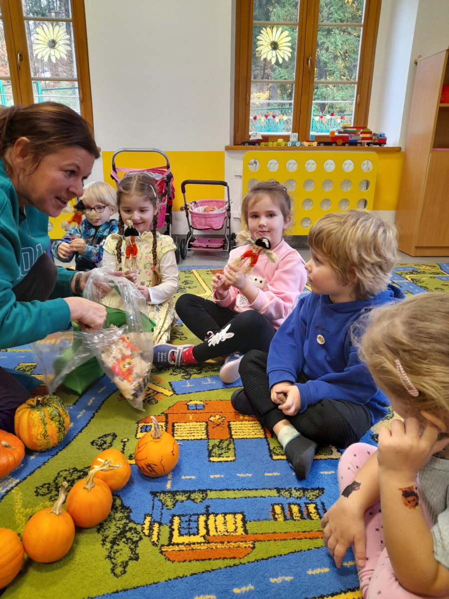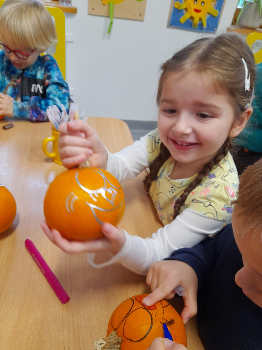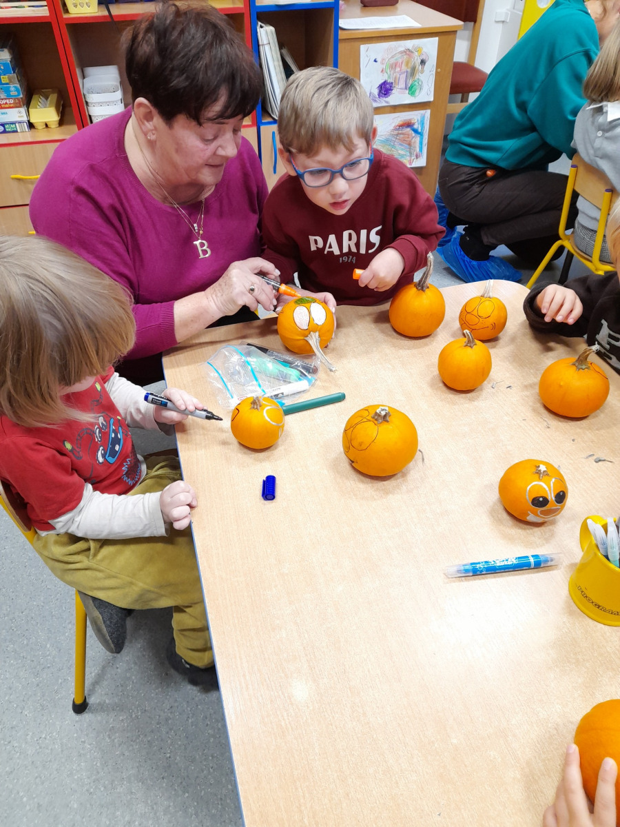 03.11.25 – Dekorowanie dyń to zabawa na 100 dyniowych fajerek, a wszystko to pod czułą opieką babci i cioci naszego Mikołaja Pani Bożenko i pani Kasiu, dziękujemy za super pomysł na jesienną zabawę i wesołe prezenty