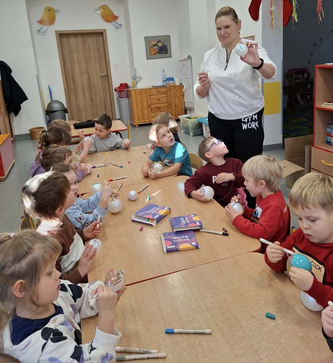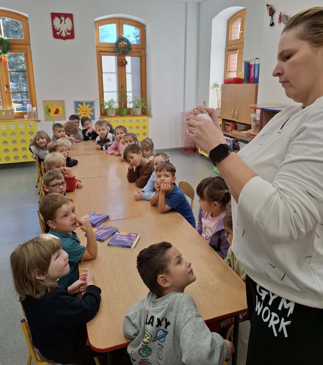Gościem specjalnym była mama Martynki, pani Magda prawdziwa zdobniczka bombek, pomogła w dekoracji oraz przybliżyła ciekawostki o produkcji bombek w Złotoryi