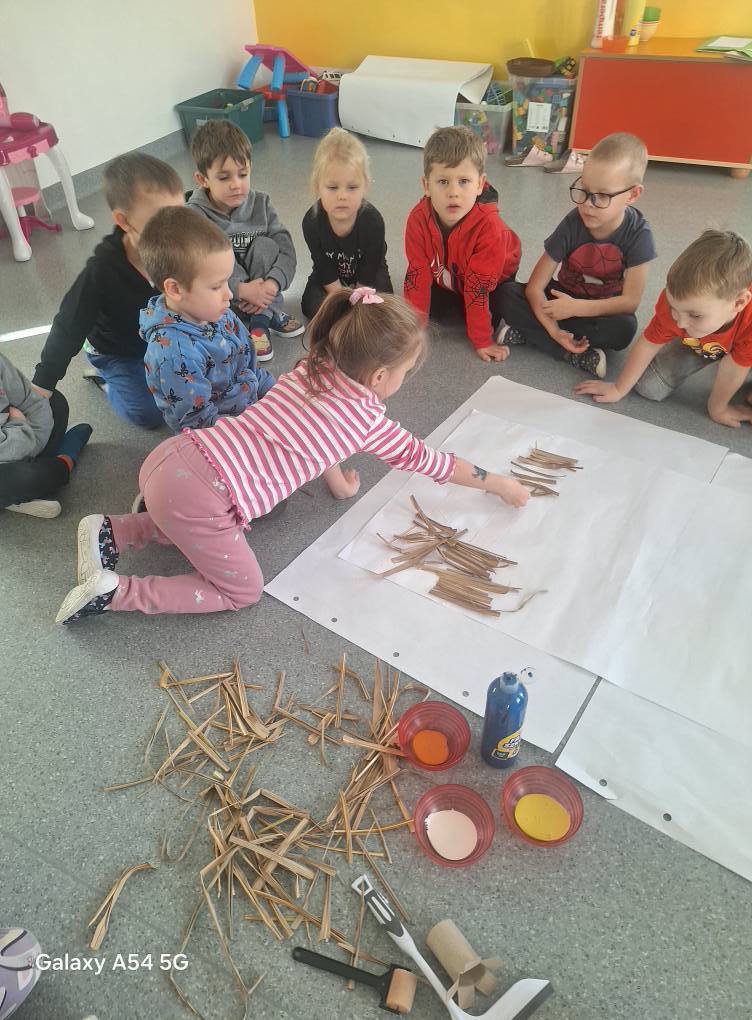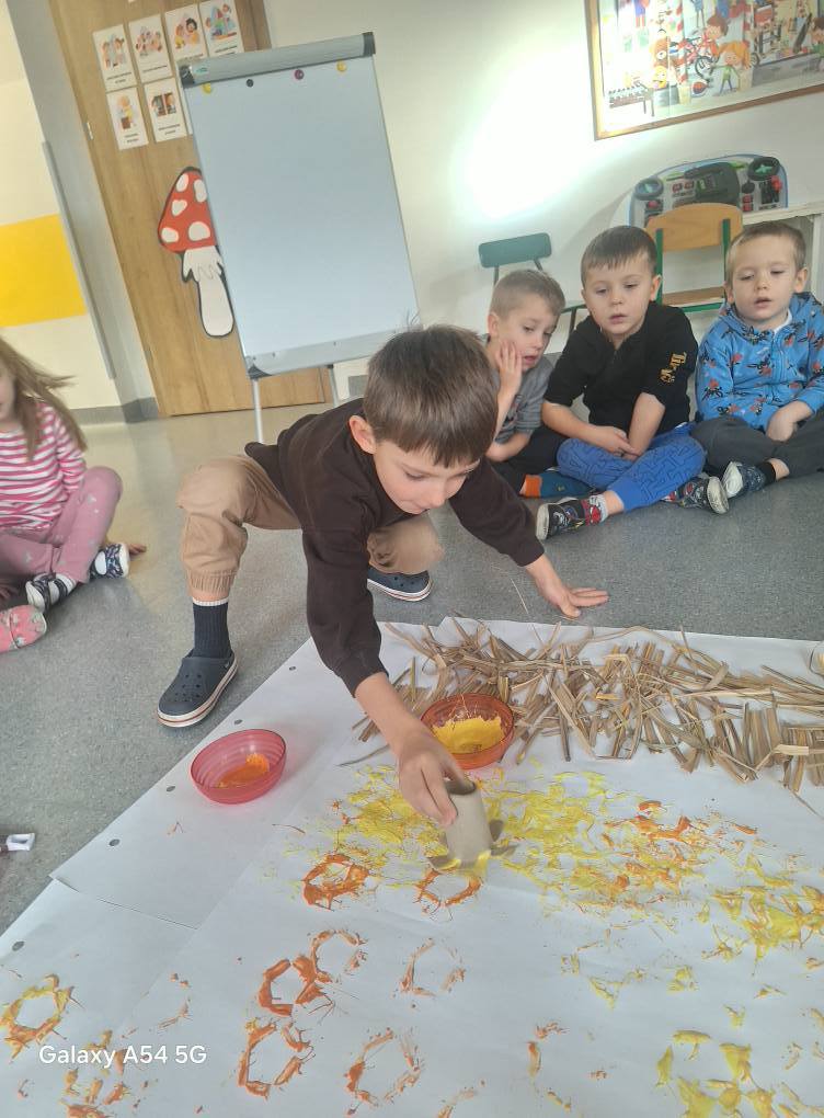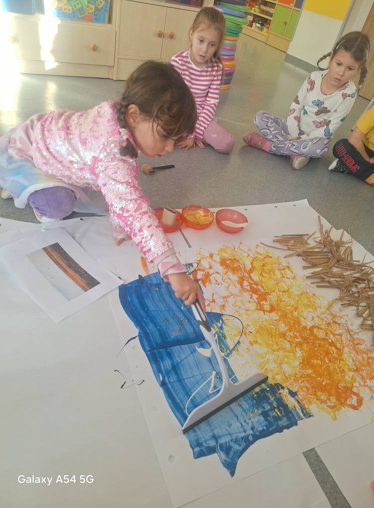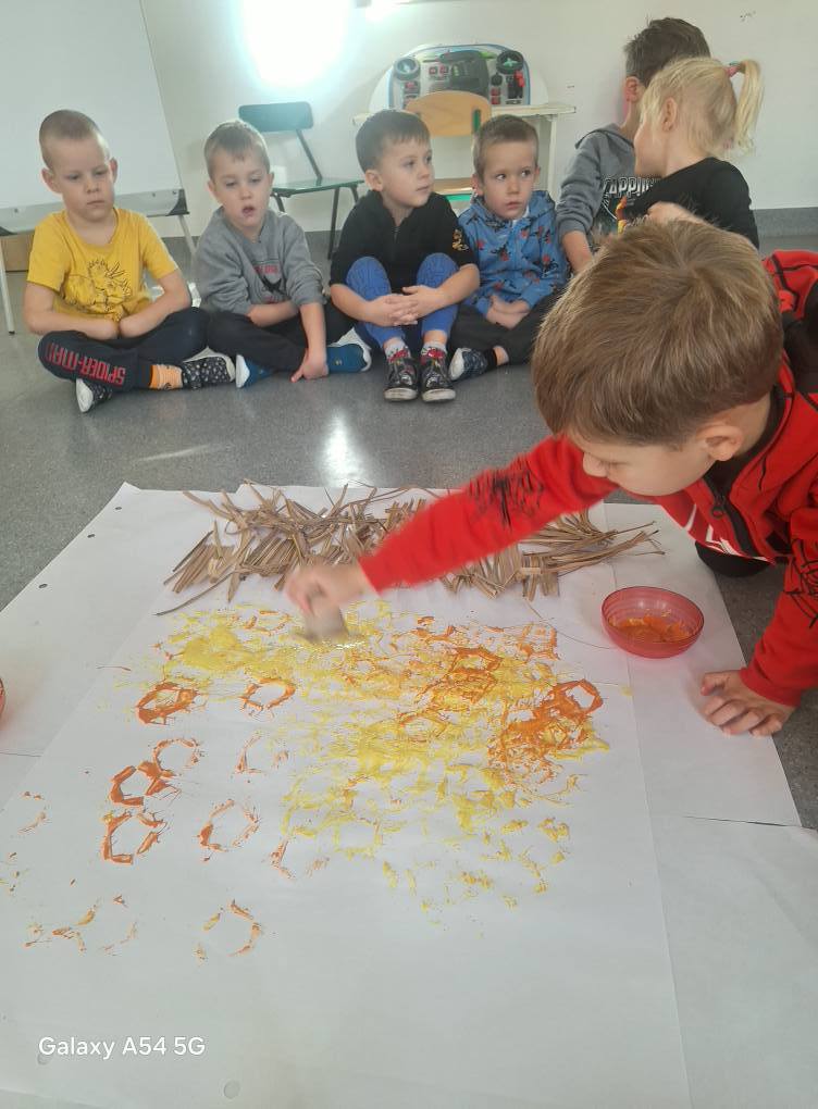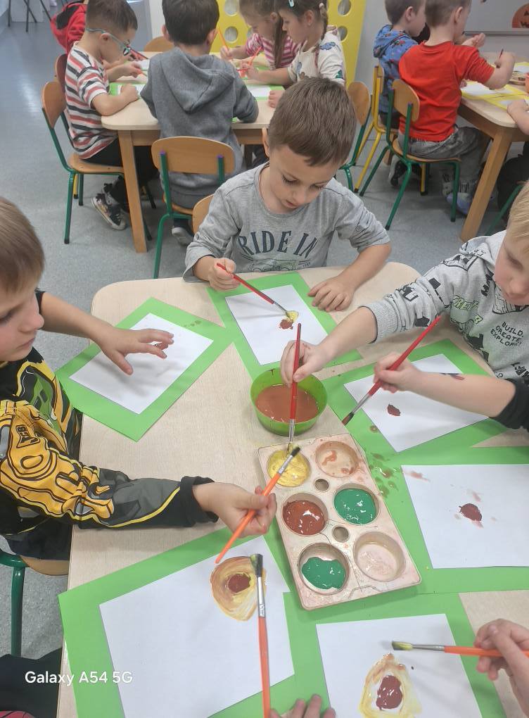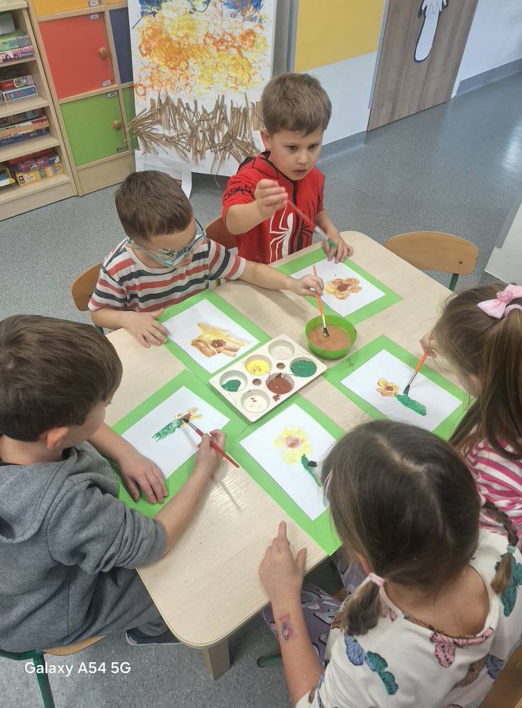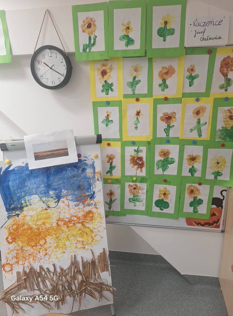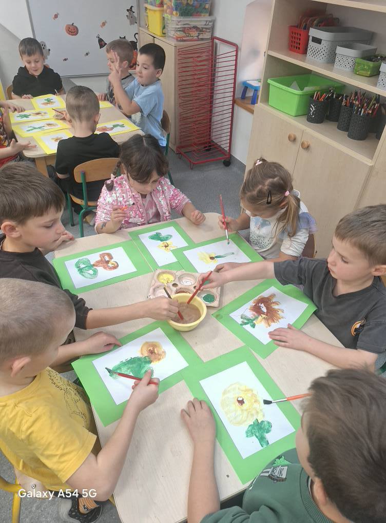 18.11.25 – „Polska na obrazach” – projekt Zabawy Sztuką. Grupa Chochlików wspólnymi siłami wykonala obraz Józefa Chełmońskiego „Kaczeńce”, następnie każdy próbował wyrazić swoje artystyczne umiejętności malując kwiaty.