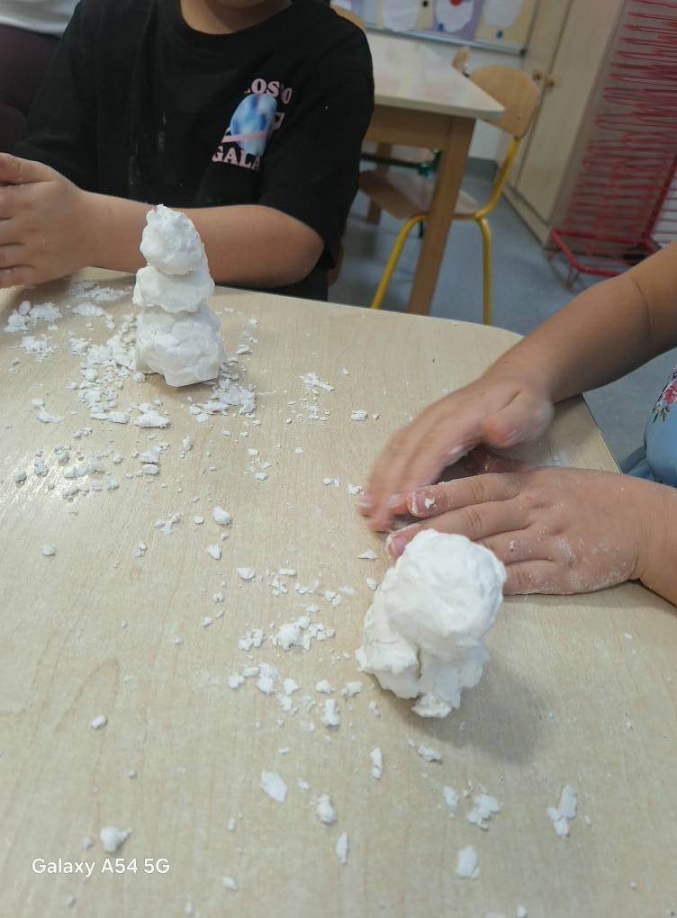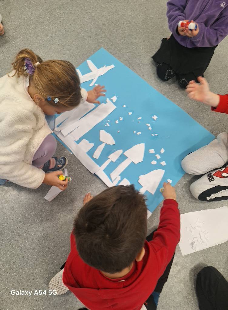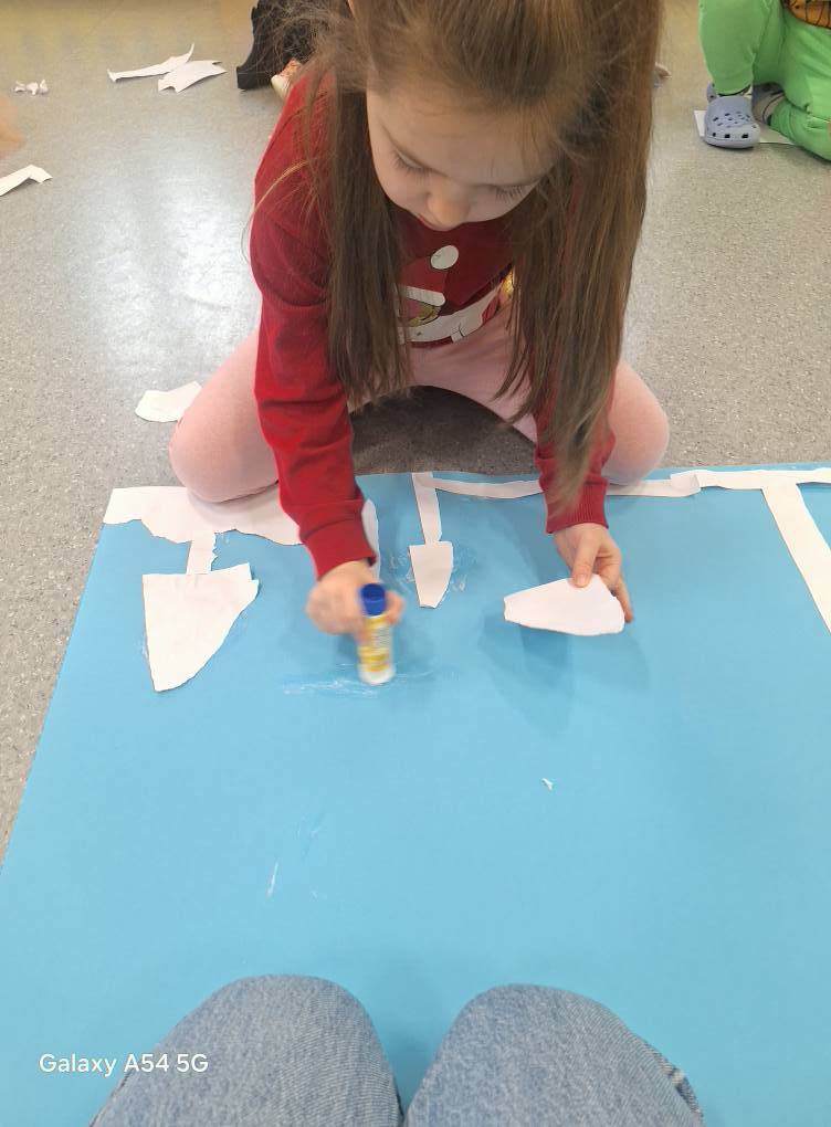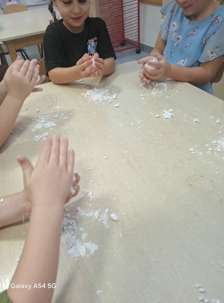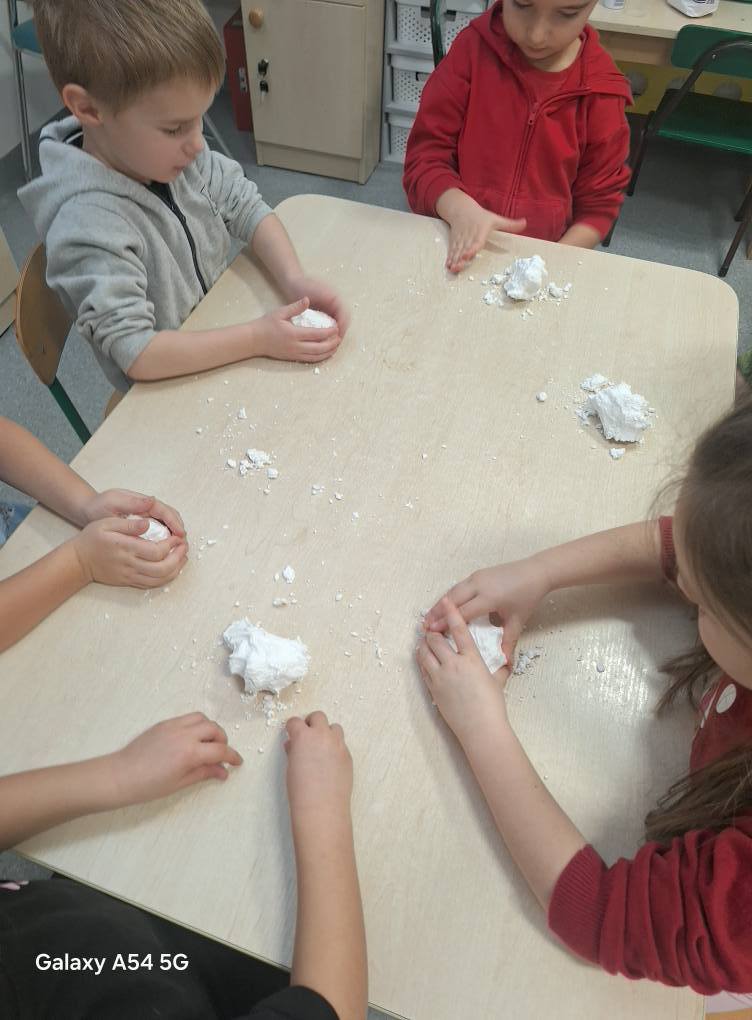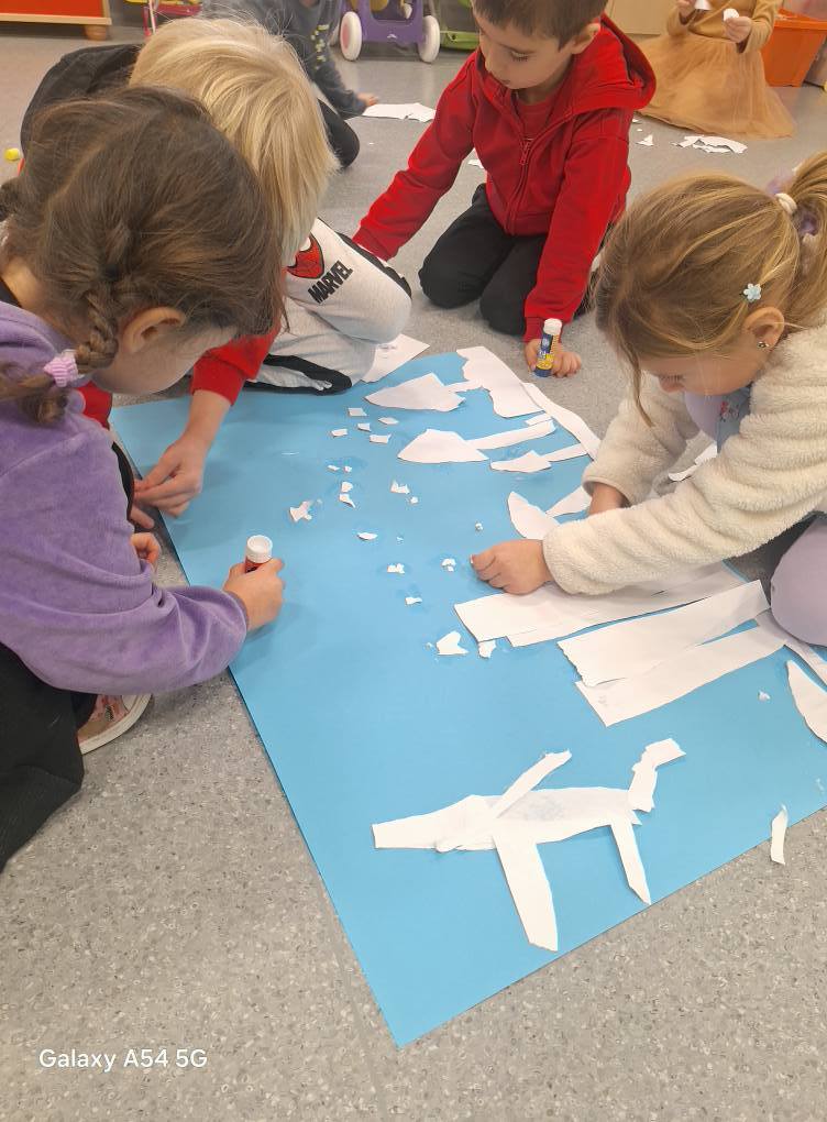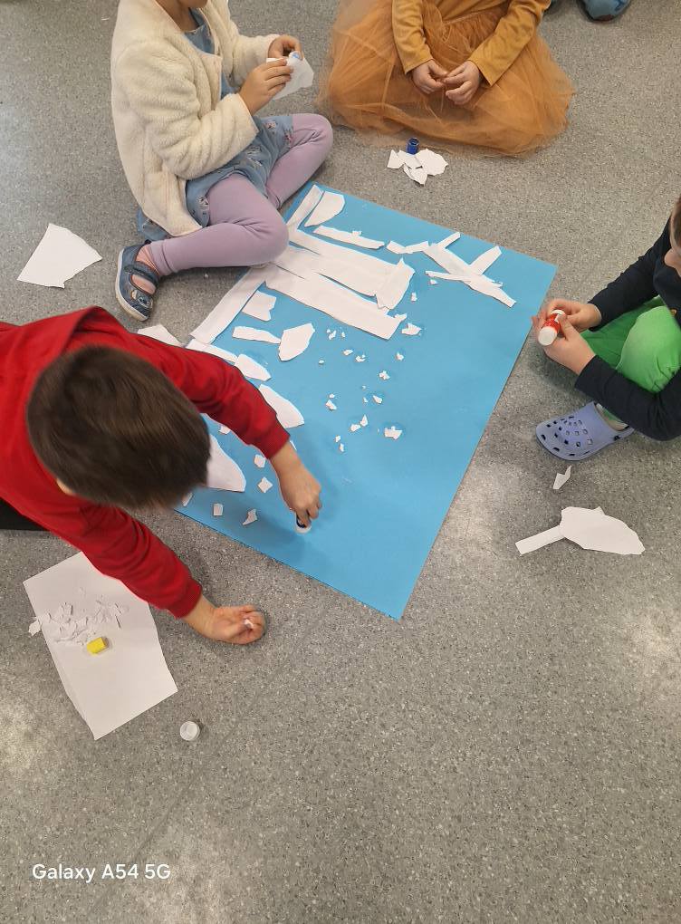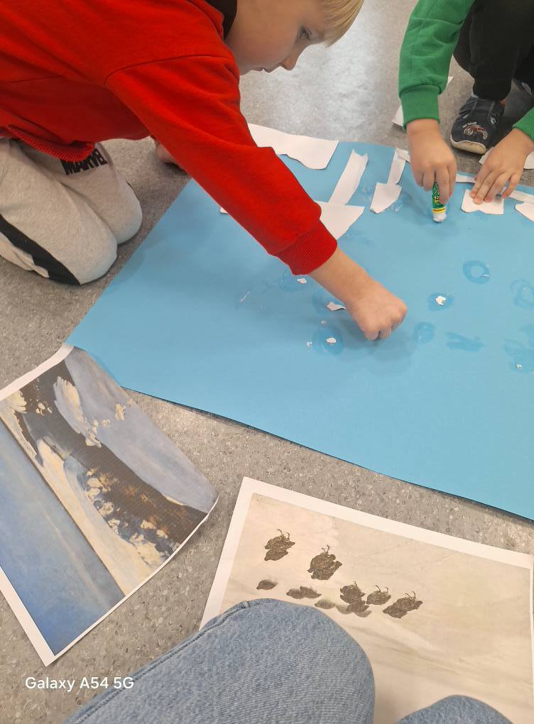 09.12.25 – Grupa „Chochliki” wykonała zadanie miesiąca z projektu „Zabawy Sztuką” – „Śnieżna zima”. Dzieci poznały obrazy: Józefa Chełmońskiego oraz Juliana Fałata, zainspirowani ich twórczością stworzyli swój własny „Pejzaż zimowy”. Przeprowadziliśmy również zabawę badawczą sprawdzając „Czy śnieg jest czysty” oraz zabawy sensoryczne ze sztucznym śniegiem.